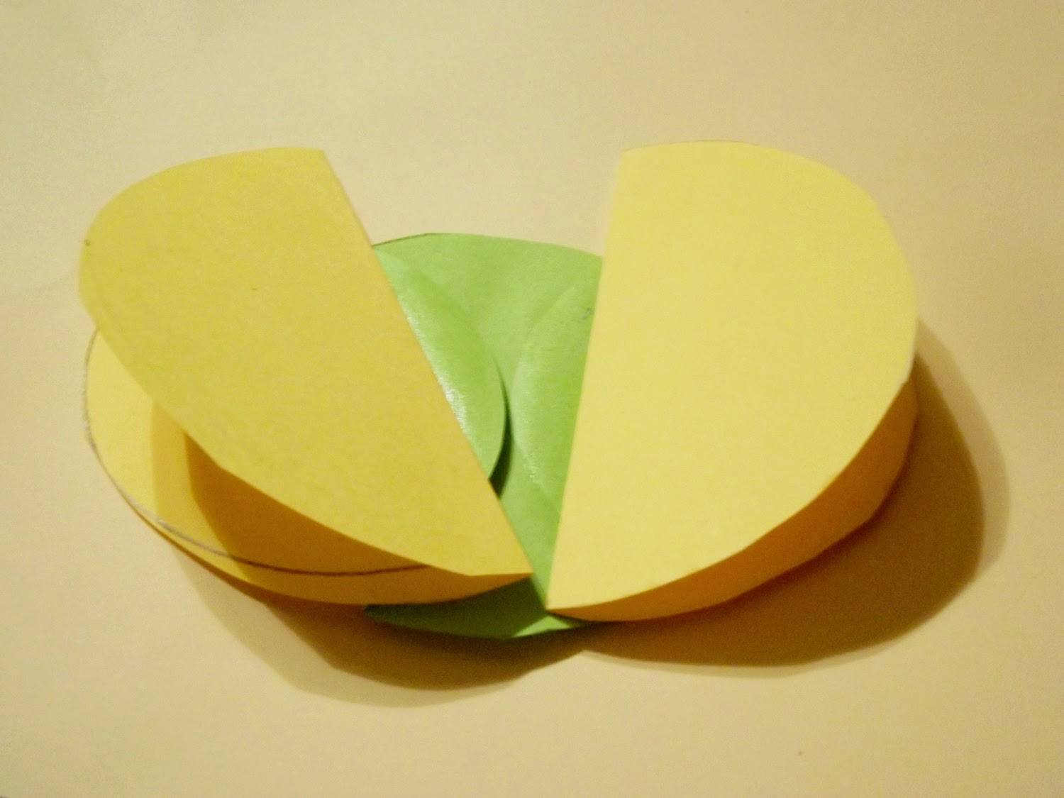 Boki dużego kółka składamy do środka. A pozostałe dwa kółka składamy na pół.