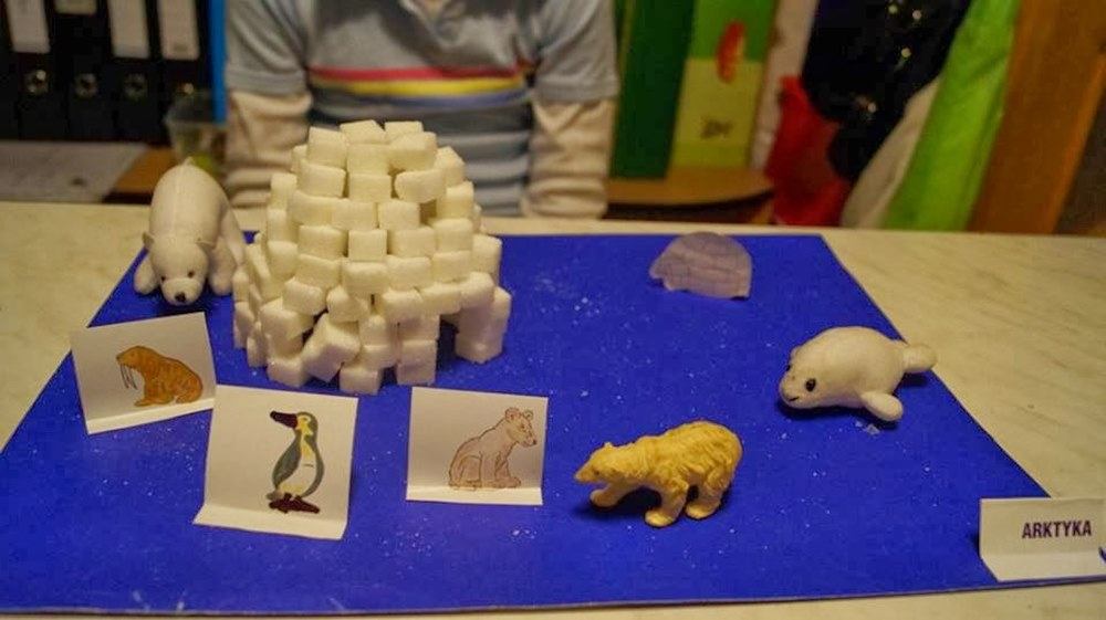 Wyglądała, bo przecież góry lodowe ciągle się przesuwają, a zwierzęta na biegunie północnym poruszają. Czasami spadnie cukrowy śnieg i zabawa na kilka dni gotowa.
