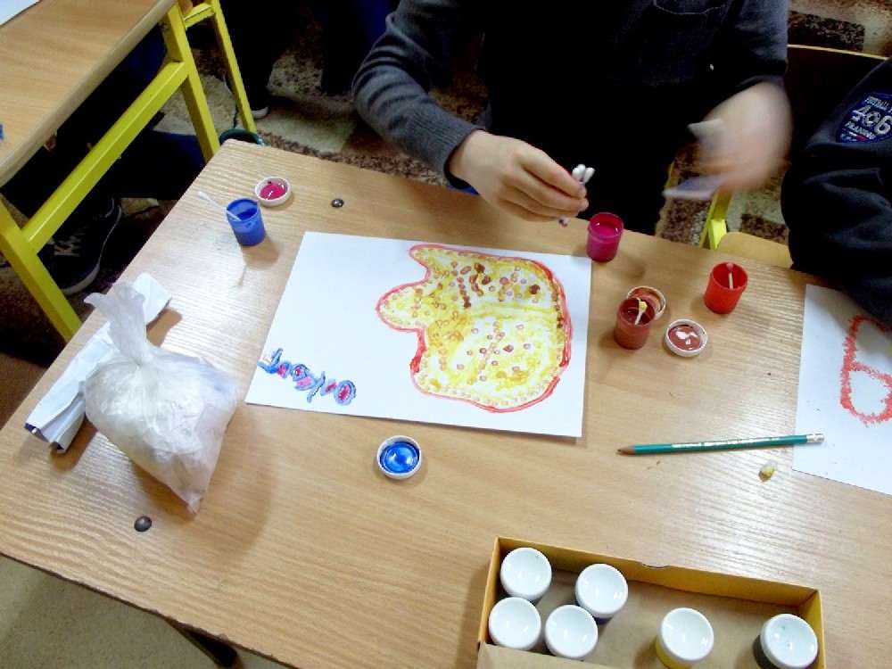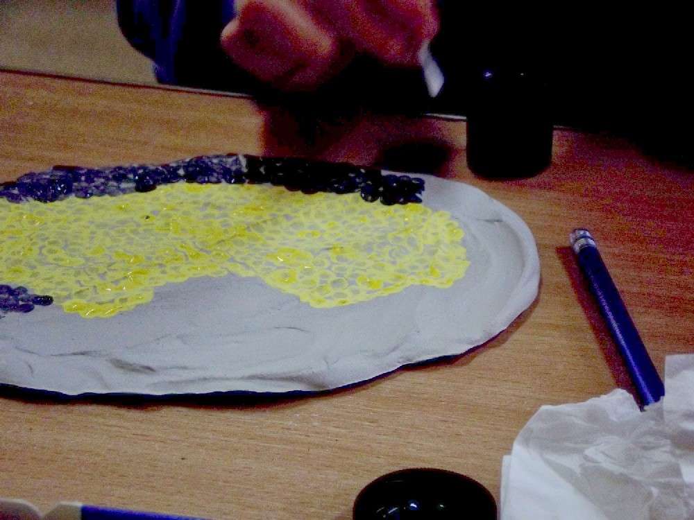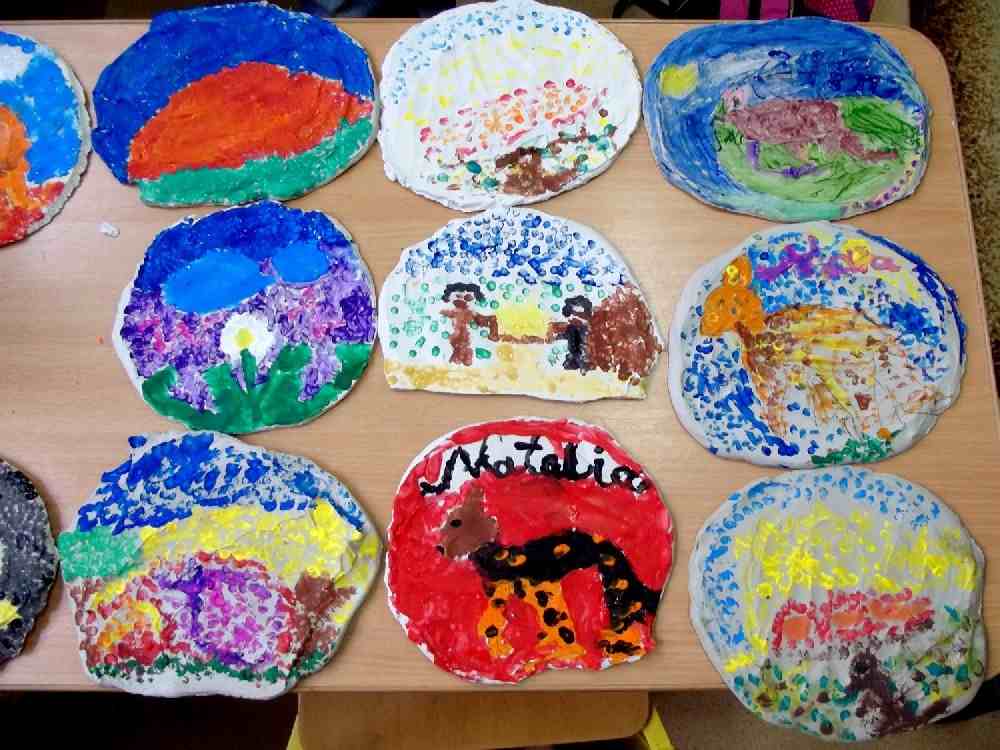 W domu przygotowałam gipsowe tabliczki dla dzieci z klasy Adasia i na nich później tworzyli swoją australijską sztukę.