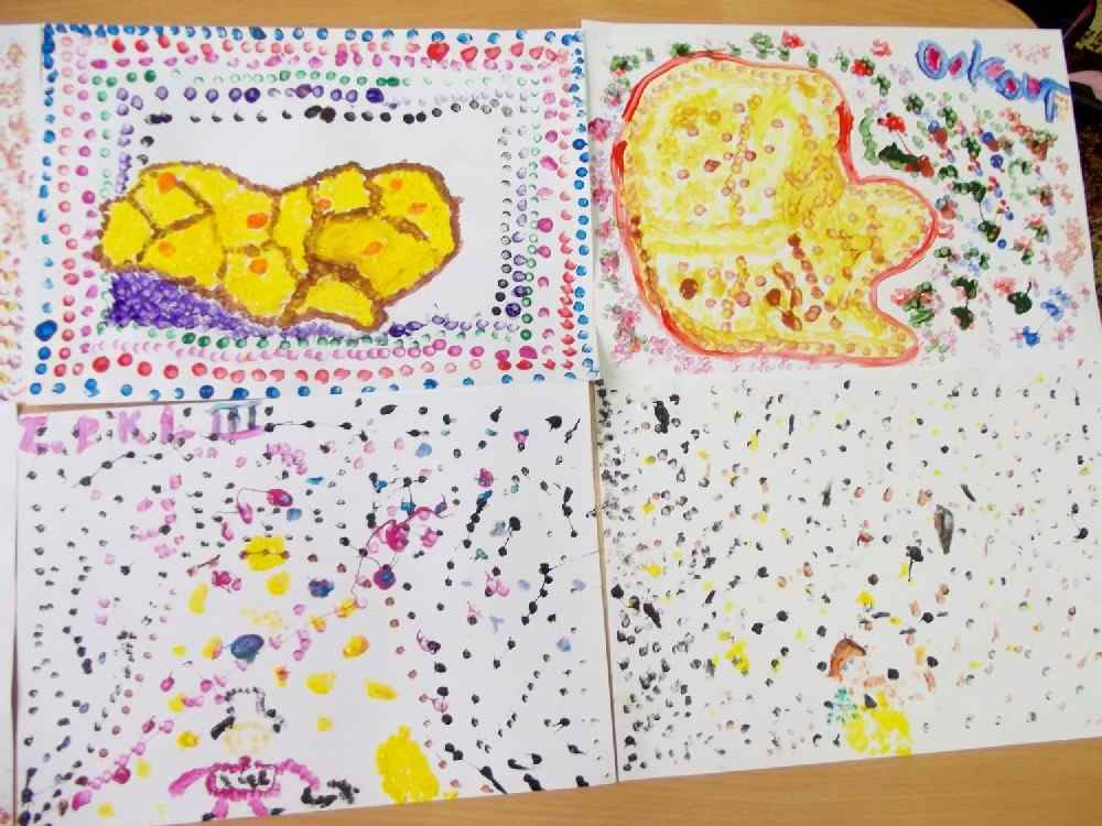 Praca zajęła dzieciaki i bardzo intensywnie kropkowali. Puk, puk, puk, puk… A takie prace powstały.