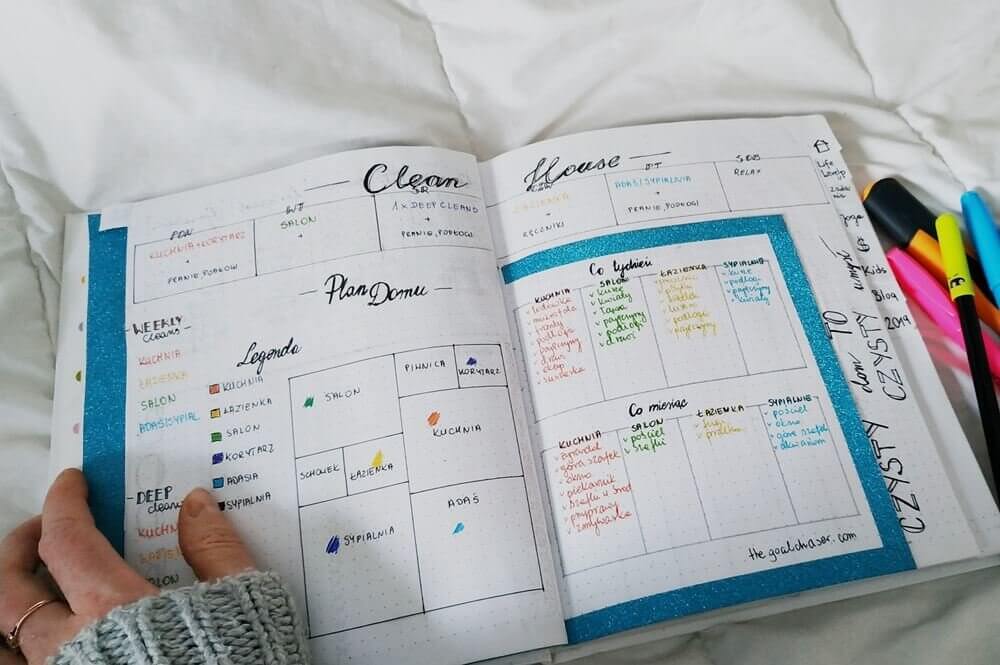 Kolejnym elementem, który ogarnął moje serce był projekt Clean House, czyli harmonogram sprzątania. Wypatrzyłam go na Goal Chaser. Połączenie dutch door, planowanie tygodnia oraz całego roku! A do tego szkic domowych pomieszczeń jako dodatek.