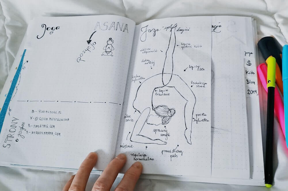 Dół od tygodniówek jest wycięty, bym miała podgląd na mini habbit tracker do jogi oraz wody. Prosta forma, która pewnie będzie ewoluować. W końcu on ma pasować do mnie moich pomysłów, zachowań i celów.