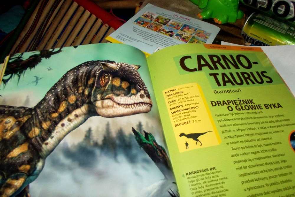 Adaś uwielbia dinozaury! Jak tylko zobaczył okładkę od Encyklopedii Dinozaurów zaczął piszczeć że chce ją mieć. A na okładce wielkie zębiska Tyranozaura. Kilka dni zrzędzenia i musiałam kupić, więc gdy listonosz przyniósł tę wielką księgę usadził Tatę na dobre 1,5 godziny. Siedział i kartka po kartce wertował, pokazywał mówił, zgłębiał szczegóły, a teraz ja Wam pokażę o co te zainteresowanie.