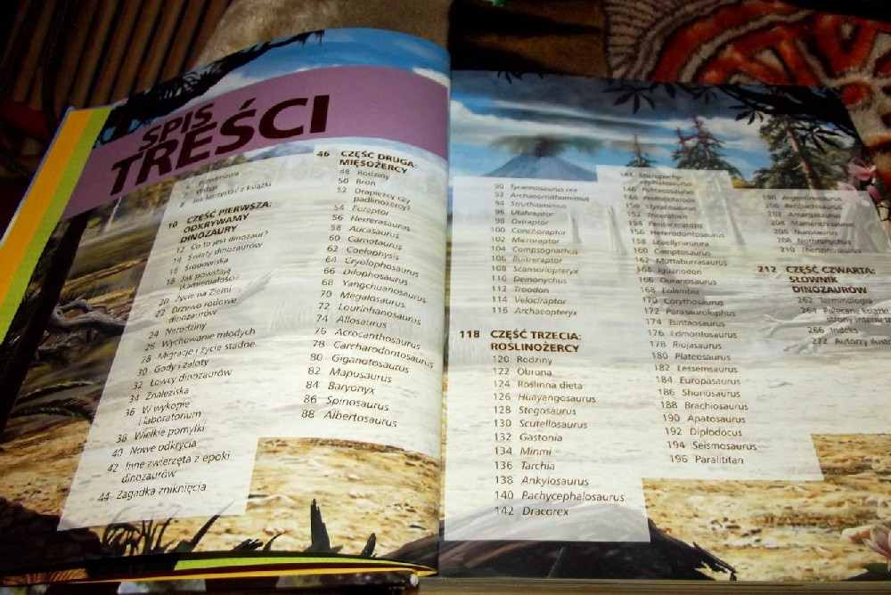 Na początku obszerny spis treści. Od czego zaczęło się życie na ziemi? Jak rodziły się młode? Kto je karmił? Jak wyglądało ich życie? Żyły w stadzie a może samotnie?