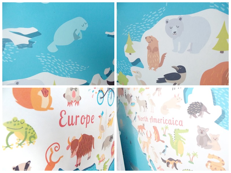 Co nas najbardziej interesowało to edukacyjny walor, świetne wykonanie, estetyczny wygląd i ładne ilustracje. Wybór okazał się idealny. Świetnie pasuje do wystroju pokoju, duża ilość zwierząt, nazwy kontynentów i oceanów w języku angielskim.