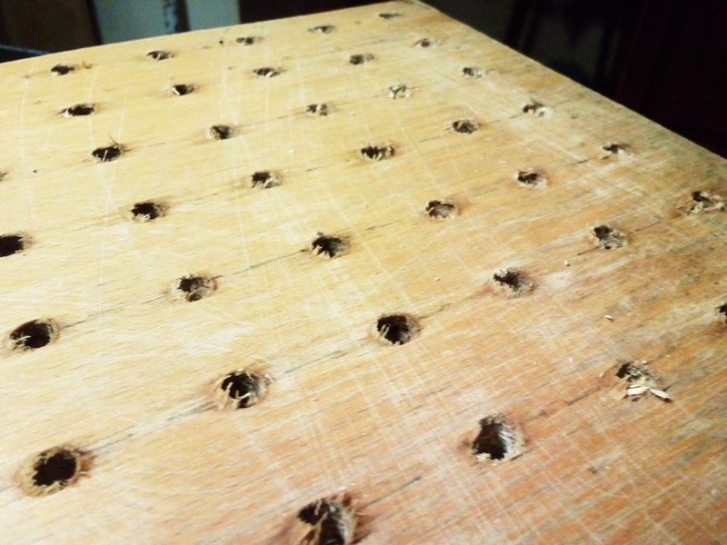5. Wywierciłam otworki. Trzeba pamiętać o dobraniu odpowiedniej grubości wiertła do grubości kołków. Tu może przydać się pomoc mężczyzny.