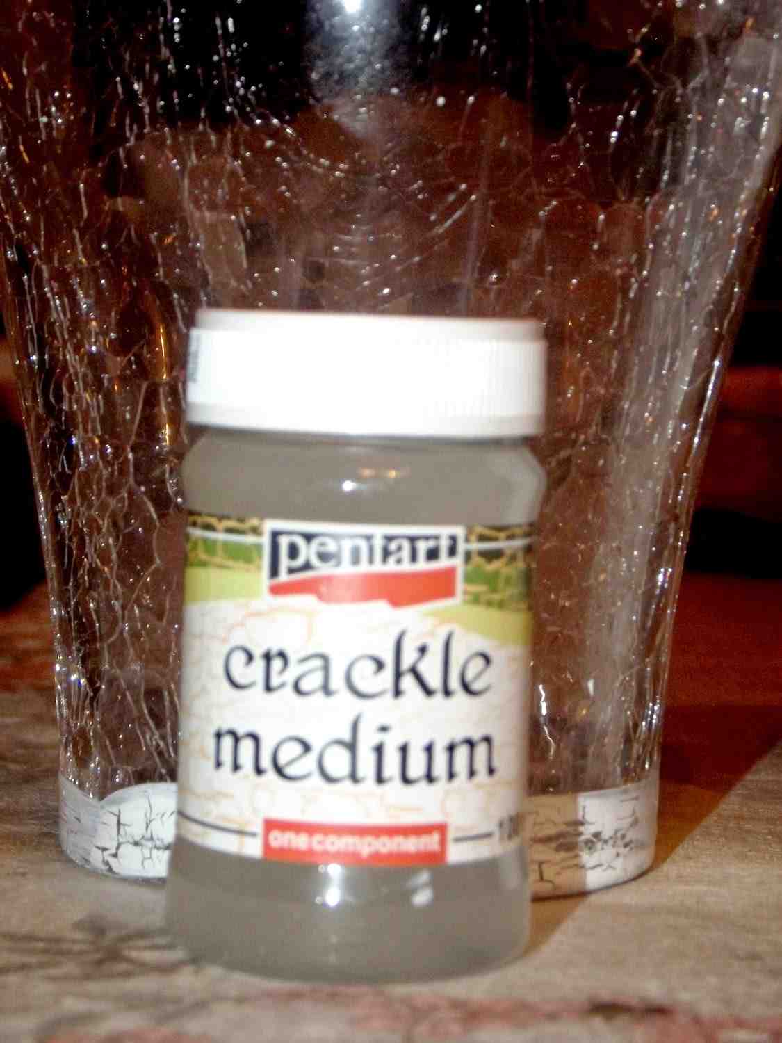 Osłonkę musiałam najpierw przygotować, umyć i odtłuścić. Całość pomalowałam preparatem do spękań. Pionowe pasy. Jest przeźroczysty, więc trzeba uważać czy wszystko zostało pomalowane.