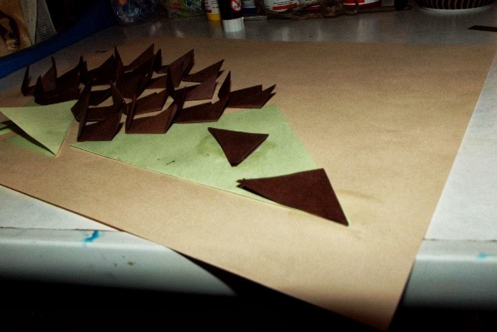 Wszystkie karteczki składamy na pół po skosie. Kolce dodatkowo będziemy jeszcze składać ale o tym za chwilę.
