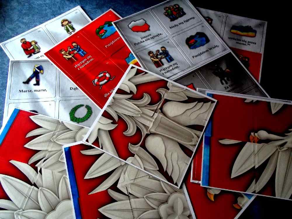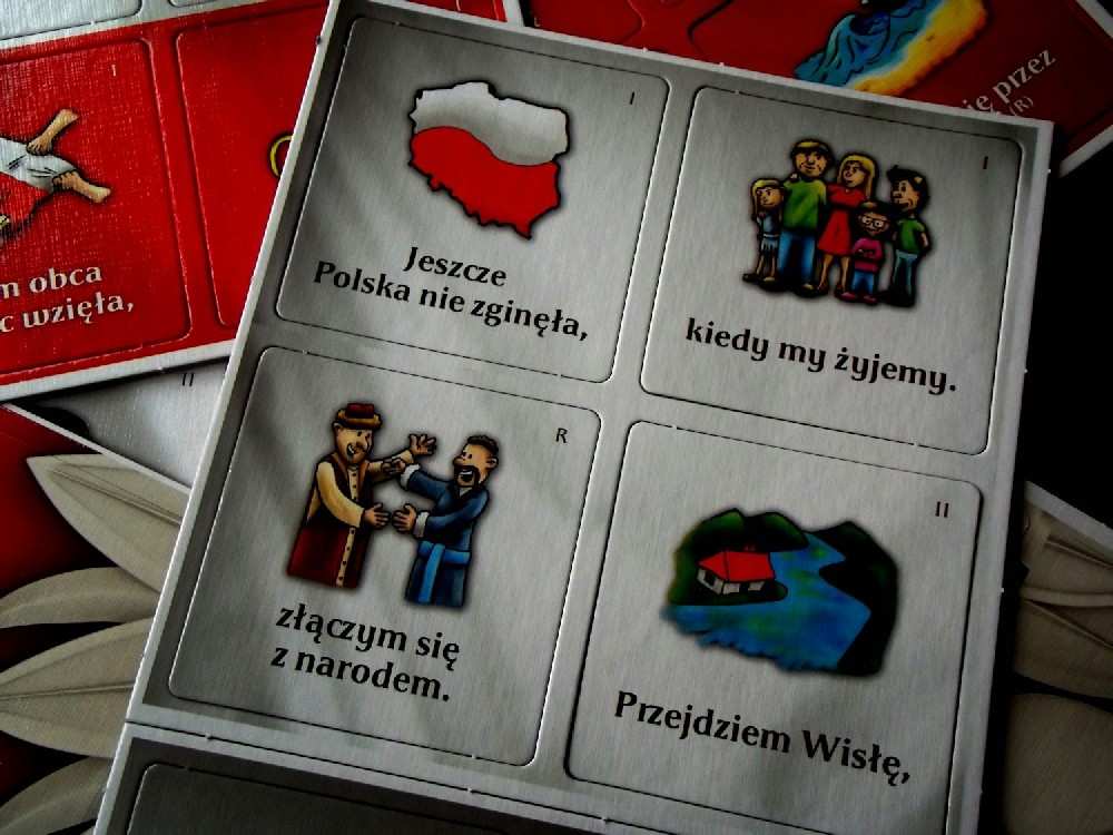 Można układać puzzle ( Orła Białego), grać w memo, układać hymn obrazkowy, układać hymn w zdaniach, bawić się w grupach. Opcji na prawdę jest sporo! A Wszystko to zapakowane w ładne pudełko.