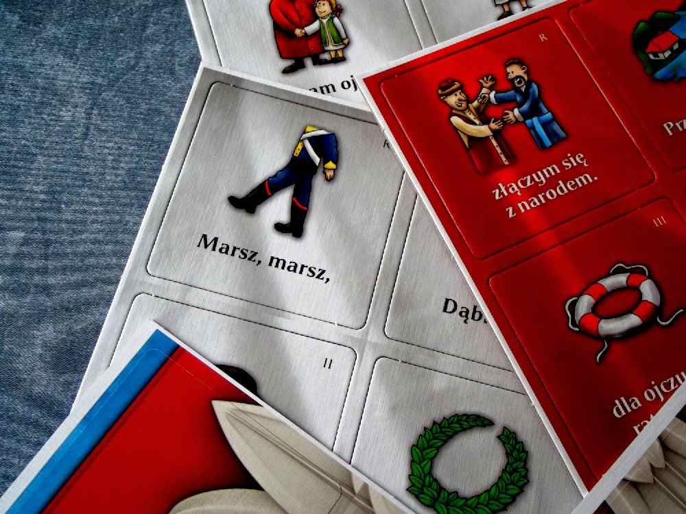 Adasia nie ma obecnie w domu, więc czekam aż wróci i zaczynamy grę. Hymn zna, śpiewa codziennie więc sprawdzimy jego wiedzę i swoją przy okazji.
