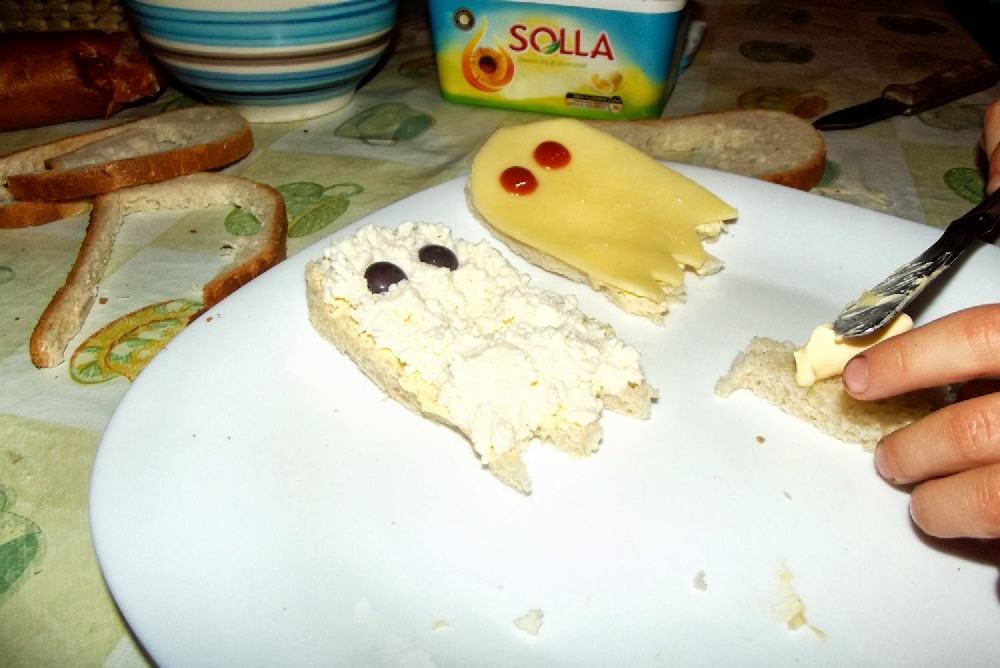 Adaś nie bardzo przepada za kanapkami. Za to lubi bawić się w pikniki. A na takich imprezach są kanapeczki. A zawsze smakują lepiej, gdy nie są takie zwykłe, szare, bez wyrazu. Wymyśliliśmy sobie kanapki Duszki. Zbliża się Halloween, więc padło na duszki. Spokojnie! Można zrobić takie kształty jakie się chce! A co znajdzie się na nich? To już zależy od Was.