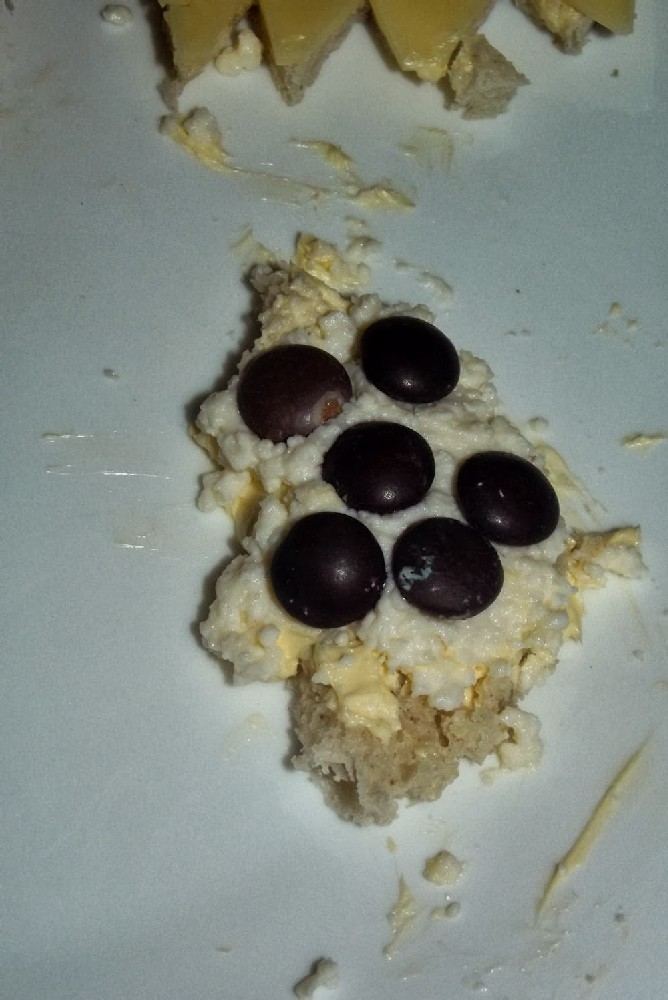 Co się znajdzie na kanapkach zależy od Was. My mieliśmy twaróg, ser żółty, pasztet. Początkowo skórki ścinałam, ale chlebek za bardzo się rozwalał. Adaś zajął się masłem i ogólnym dekorowaniem Naszych smakołyków.