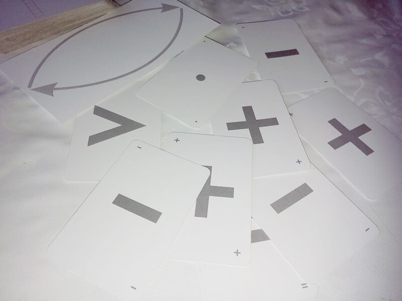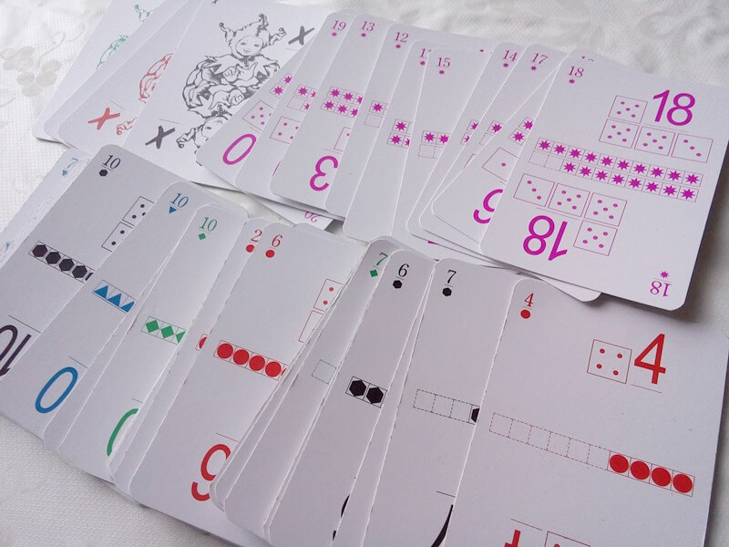 Razem z kartami otrzymujemy książkę.Wszystko jest wyjaśnione jak z niej korzystać, czego się spodziewać i jak z nią pracować. Sporo różnych gier, o różnym stopniu trudności, opisane w łatwy i przystępny sposób wprowadzają nas w świat fascynujące matematyki. Niektóre z zabaw są dla 2 graczy, inne dla większej ilości dzieci, które śmiało można wykorzystać na lekcjach w szkole!