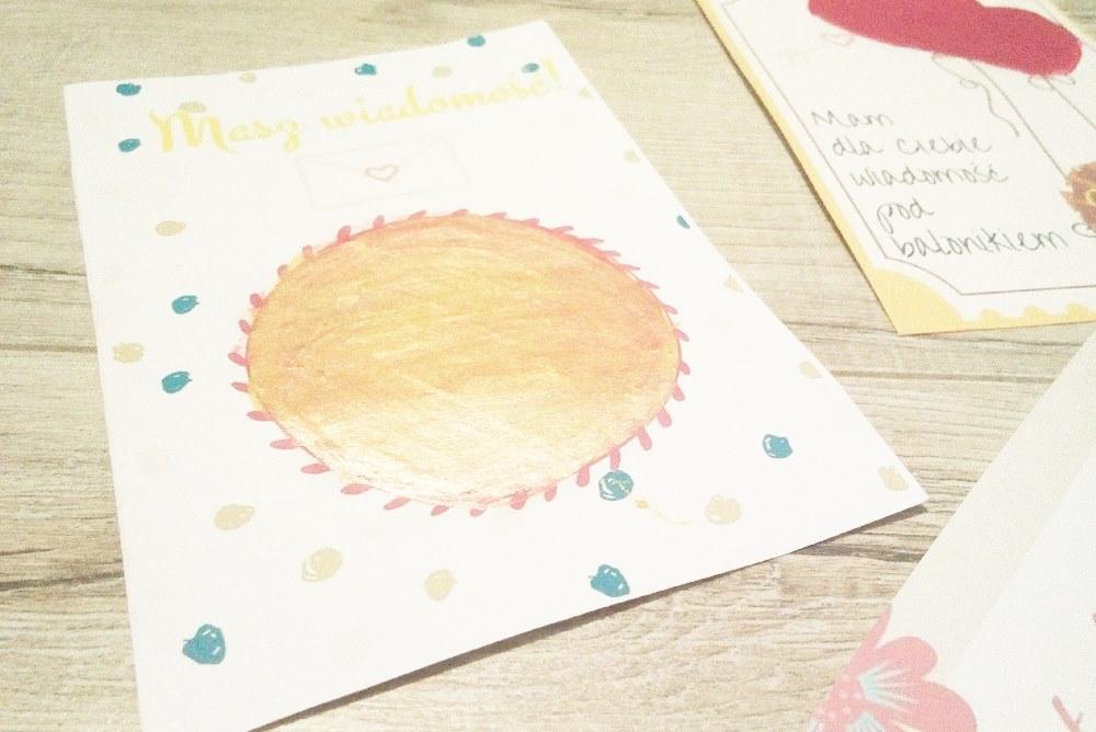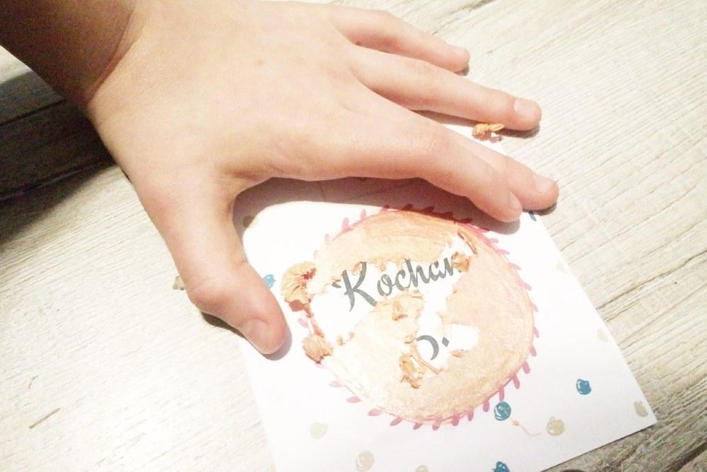U nas były to nawet 4 warstwy (3 i 4 to sama farba) w przypadku koloru złotego i różowego. Kolor granatowy ładnie pokrył i już jedna warstwa zakryła tajemniczy napis. Po wyschnięciu (porządnym!), można zapakować kartkę do koperty i podrzucić ukochanej osobie lub po prostu ją wręczyć i niech sprawdzi, co otrzyma z okazji walentynek.