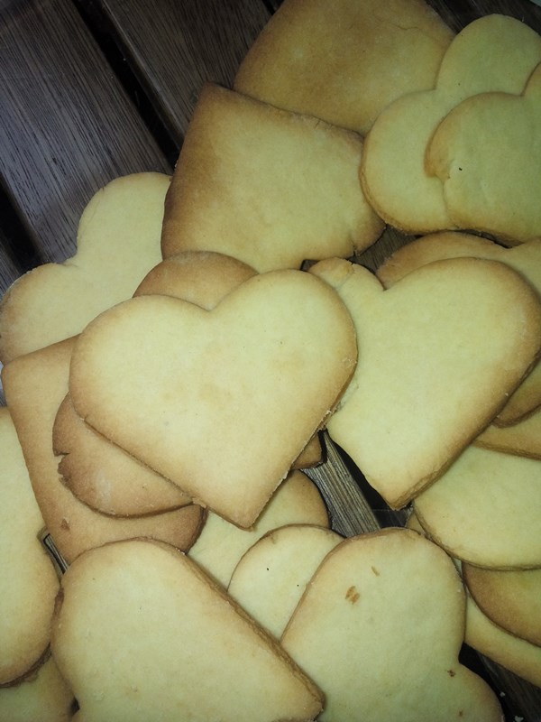 A że my lubimy okazywać sobie miłość, lubimy też ciasteczka zrobiliśmy sobie serduszkowe ciasteczka maślane. Pierniczki pieczemy na Boże Narodzenie, a teraz rozkoszujemy się smakiem maślanych.