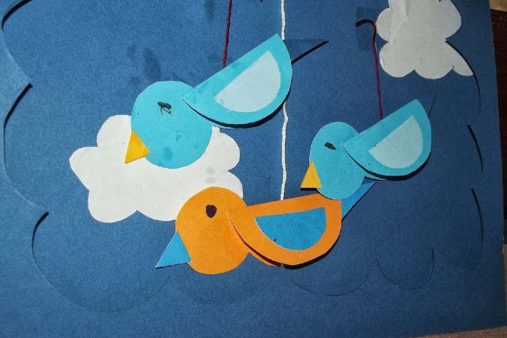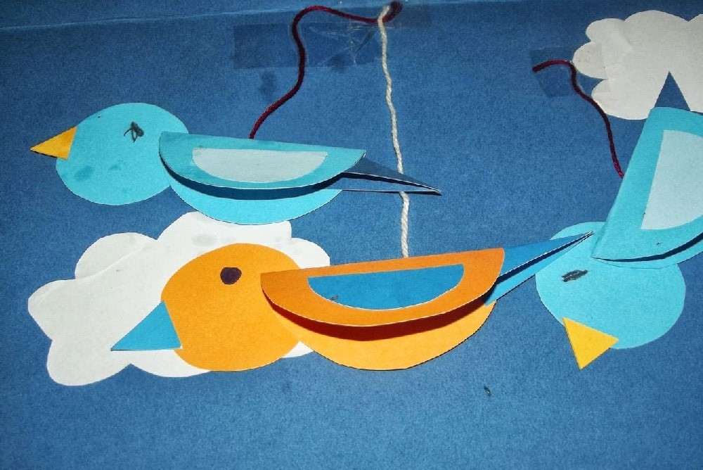 Na jednego ptaszka wycinamy 2 mniejsze kółka , jedno większe oraz 2 trójkąty – na dzióbek mały i duży na ogon.