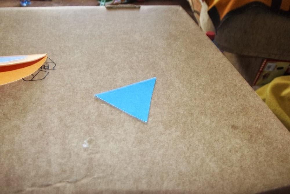 Z dużego trójkąta robimy ogon. Składamy go na pół.