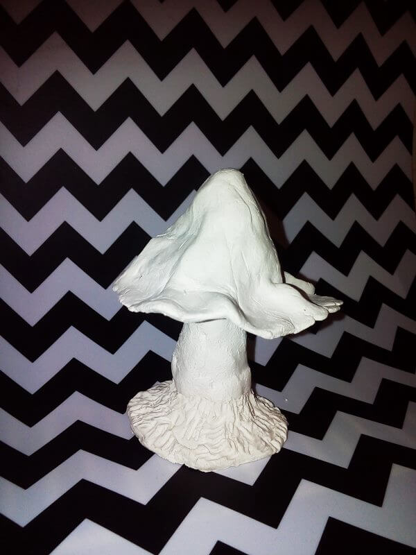 - Na końcu powstała podstawka, by grzybek mógł stać. Obie części połączyłam i odstawiłam by wyschło.