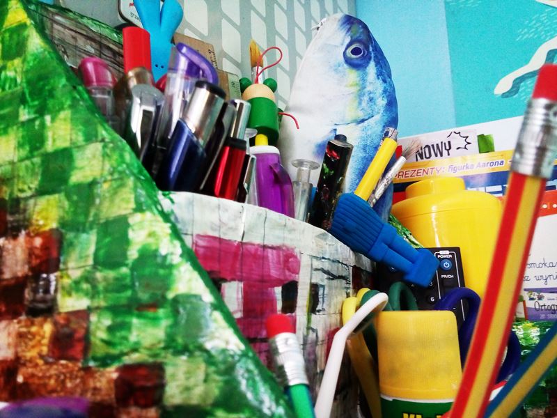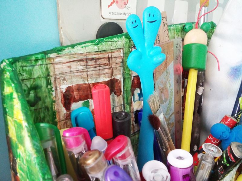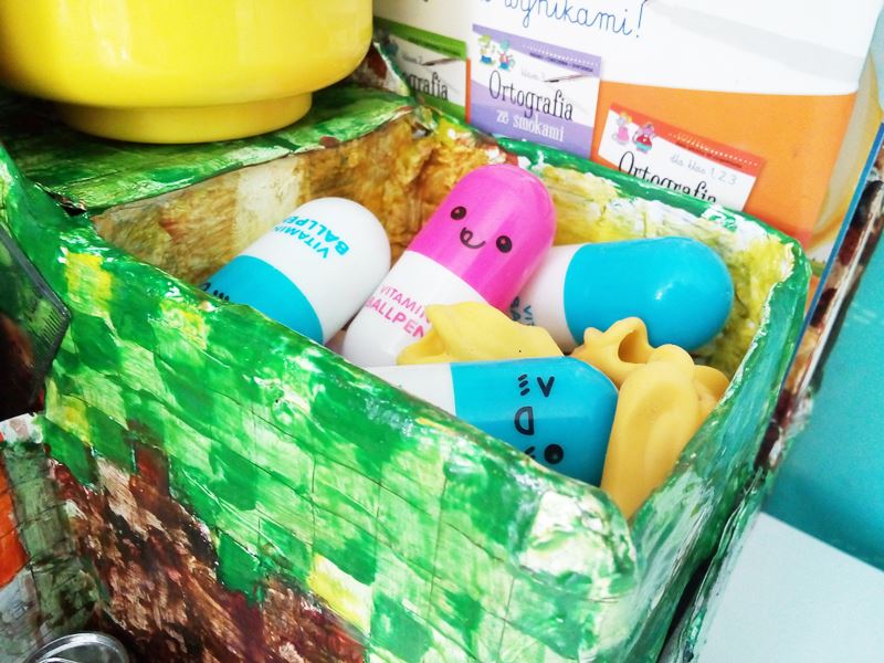 Poprawki można nanieść np. czarnym markerem – obwód poszczególnych elementów postaci. Gdy farba dobrze wyschnie, można malować lakierem. By farba nie spłynęła, warto spryskać lakierem do włosów, a następnie pomalować lakierem do drewna akrylowym. Teraz pozostaje tylko ustawić organizer, poukładać wszystko jak trzeba i cieszyć się efektem!
