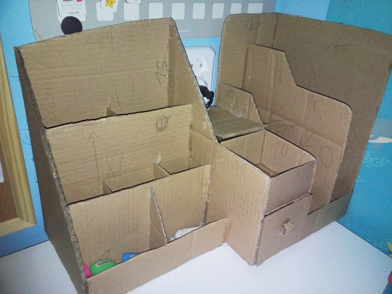 Wykonanie takiego organizera zajmuje nawet kilkanaście godzin. Jednak wliczam tu również malowanie, poprawki, lakierowanie. Samo wycinanie, klejenie to kwestia kilku godzin.