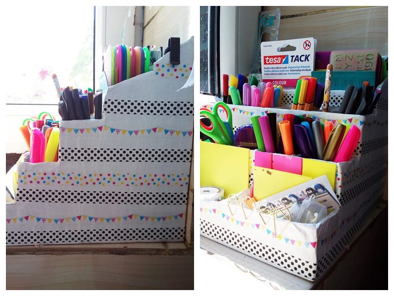 Pierwszy organizer zrobiłam dla siebie. Prosty, pomalowany na biało, ozdobiony taśmami washi od Tesy. Jak Wam się podoba taki sposób na organizację pisadeł? Która forma bardziej przypadła Wam do gustu? A może macie zrobione swoje własne kartonowe organizery? Jeśli tak pokażcie koniecznie!