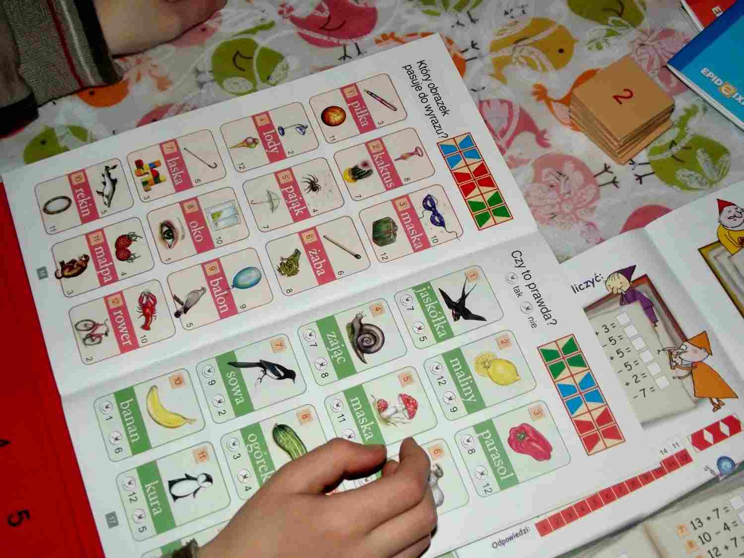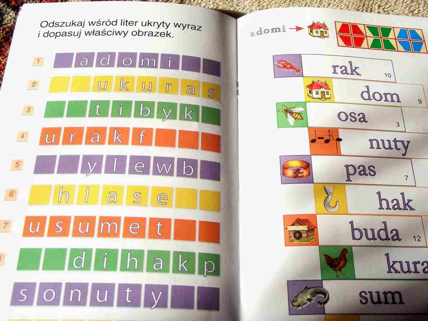 Łatwe ćwiczenia do nauki czytania – o ile Adaś nie chętnie pisze czy czyta tak z tą książką pracuje chętnie! Miód na matczyne serce. Bez napięcia, z uśmiechem na buzi sięga po tą książkę i rozwiązuje zadania. Kilka omija bo uważa trudne, ale z czasem i one staną się jednak łatwe. Układa tyle i uważa. czasem jest to 1 zadanie, innym razem 7 czy 8. Jeśli zaczyna go męczyć odkłada. Jednak bardzo fajnie z nimi pracuje i co najważniejsze skupia się , a gdy popełni błąd zaczyna od nowa bez nerwów.