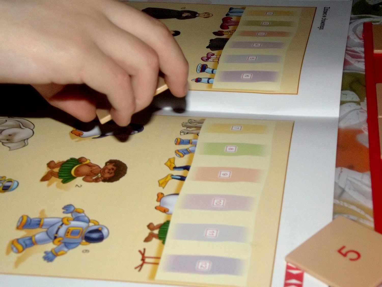 Matematyka konkretna – różnorodne zadania z zakresy miar, wagi, pieniędzy i symetrii. W tej książce poziom zadań jest bardzo różny. Jedne są prostsze i cieszą się dużym zaangażowaniem, inne sprawiają trudność i są na razie omijane przez Adasia. Jeśli chodzi o ilustracje zawarte – bo one głównie odgrywają tu role- nie które podobają nam się bardziej inne mniej, kwestia gustu.