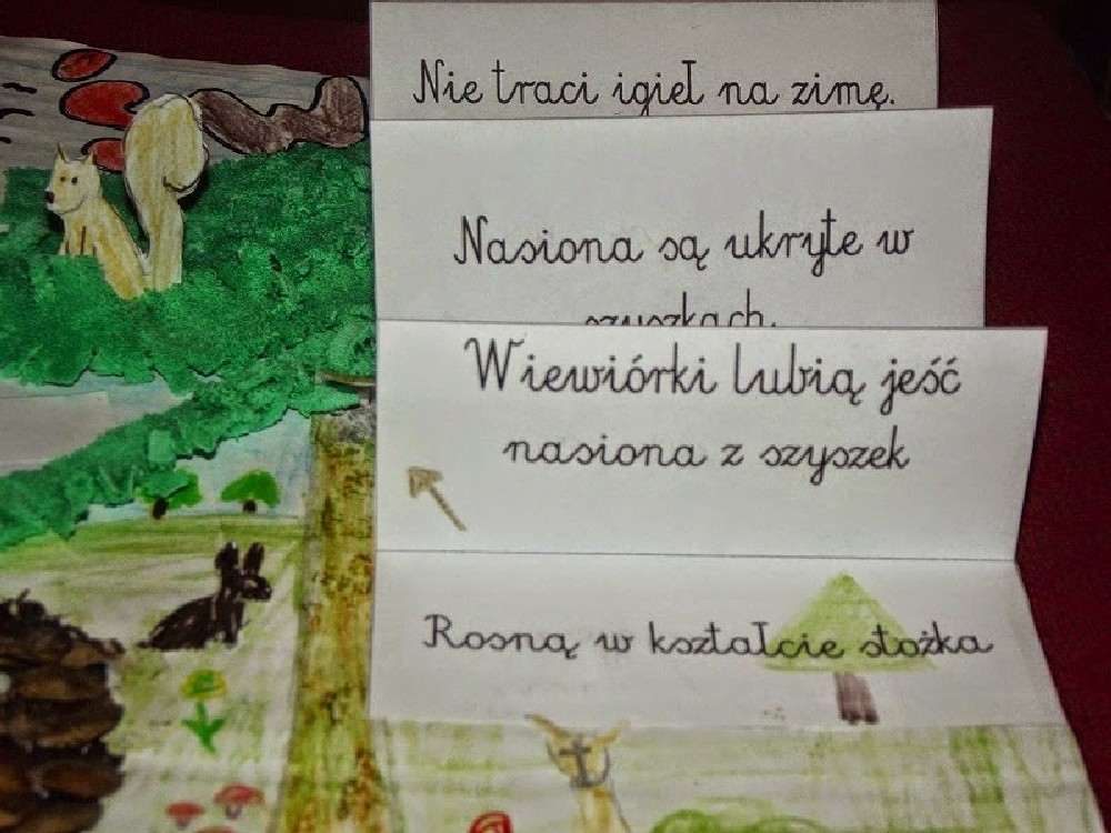 Całość dopełniła harmonijka z najważniejszymi cechami świerku. Całość została naklejona na tekturę.