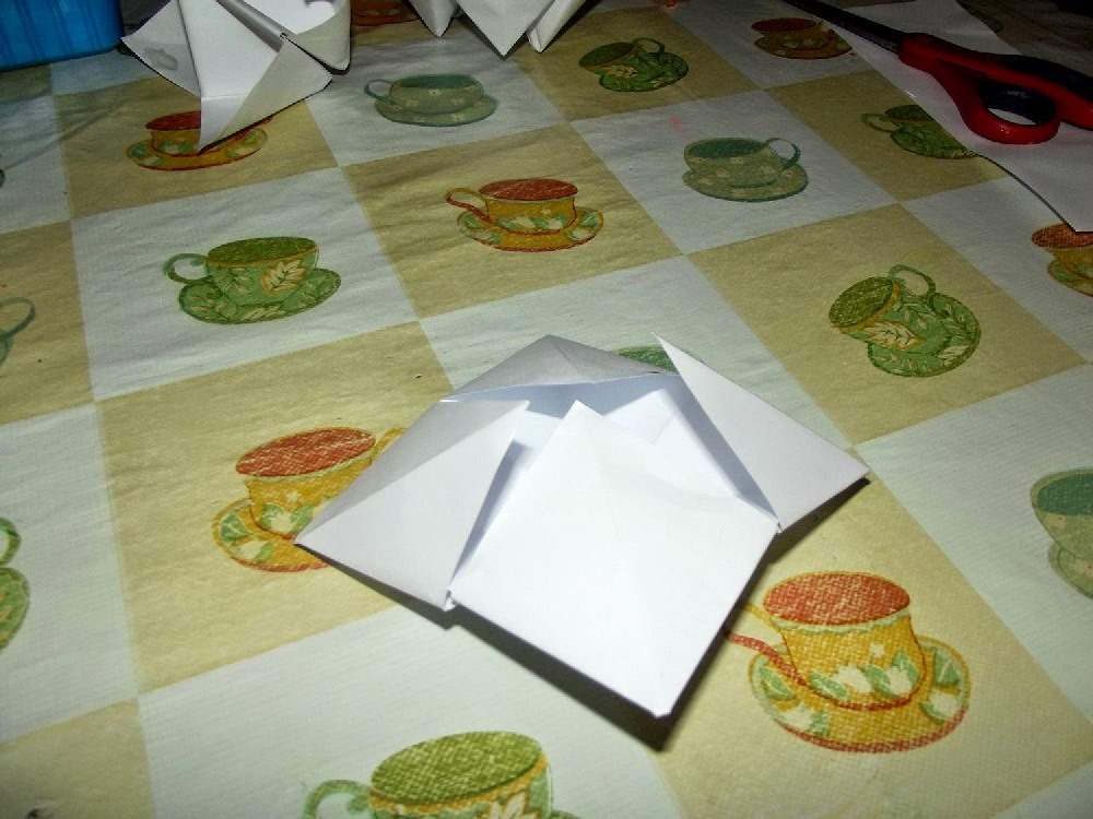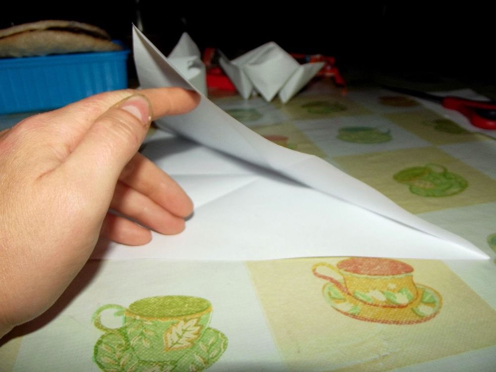 Odwracamy na drugą stronę i znów zaginamy rogi do środka