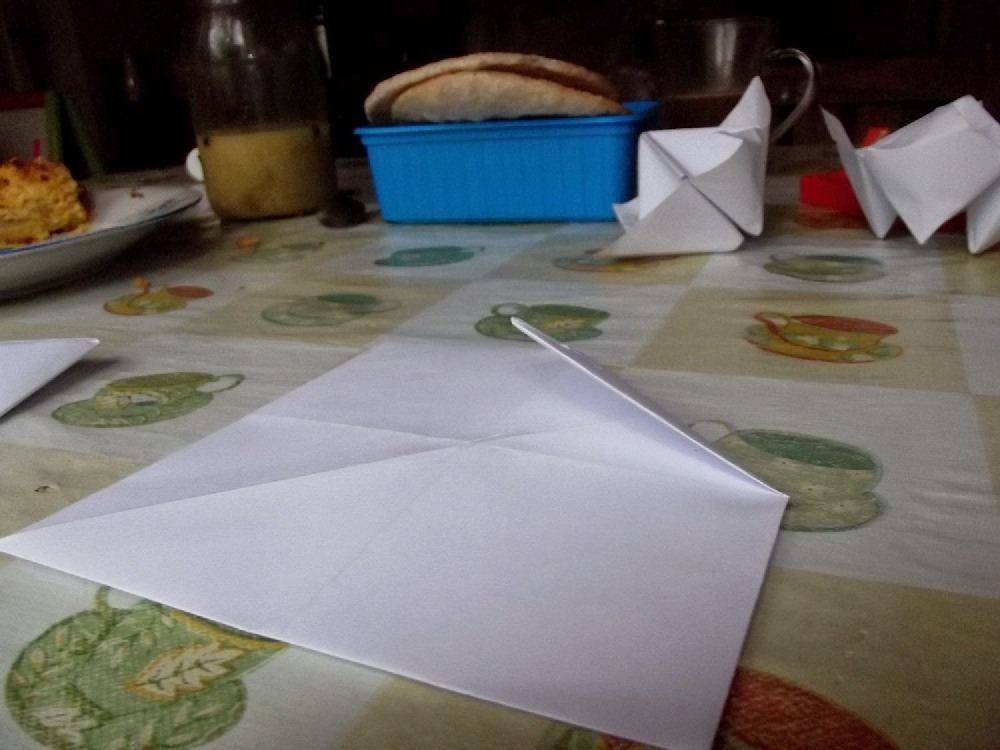 Składamy kartkę po skosie dwa razy.