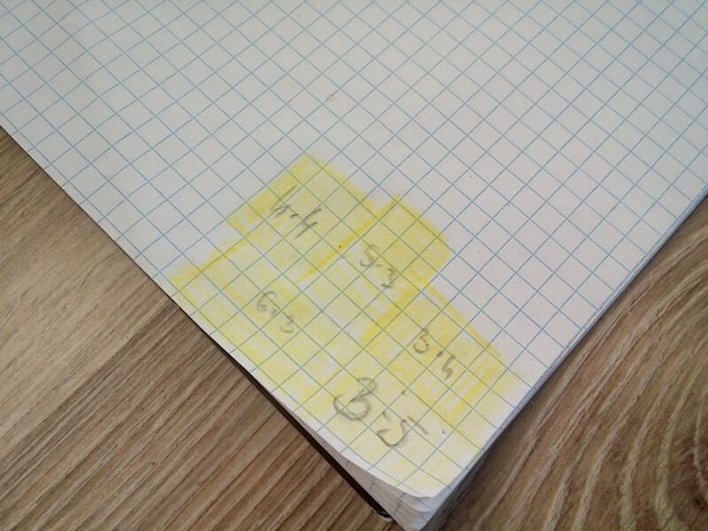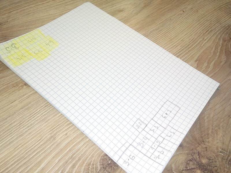 Kratki można zarysowywać jak również zaznaczyć boku a na środku napisach działanie jakie wykonywaliśmy ( np 6×5, 3×3).