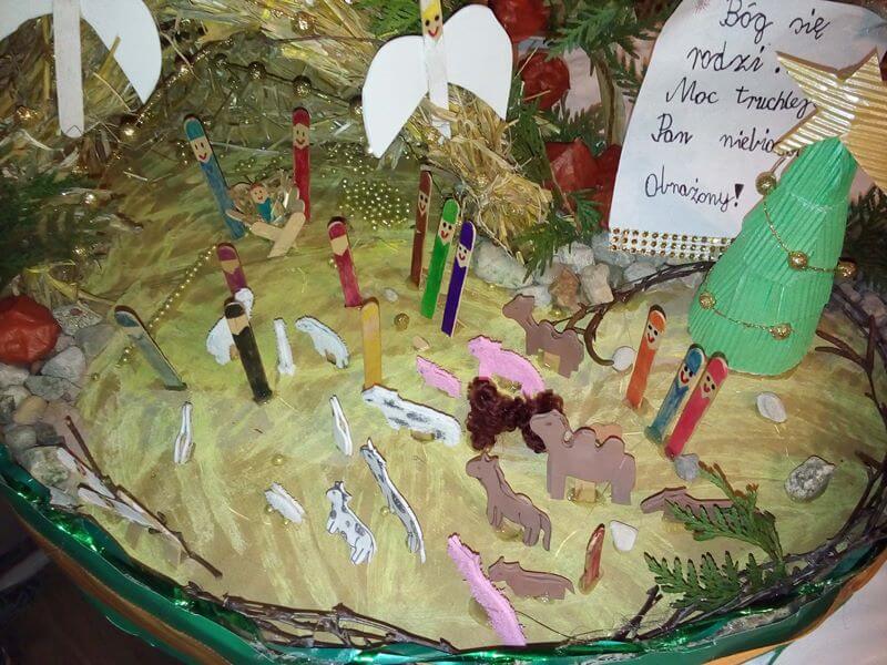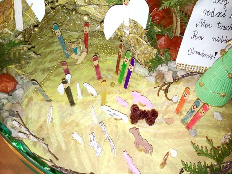 Okres bożonarodzeniowy jest aktywny w twórcze działania związane ze świętami. To cudowny czas, pachnący igliwiem, siankiem i masą dekoracji. Najważniejszy w tym czasie są narodziny Jezusa – szopka, żłóbek, jego historia. Często dzieci z rodzicami robią szopki z tego co mają w domu. Ja też pomogłam mojemu dziecku w tworzeniu, ale jego szopka pojechała na konkurs.