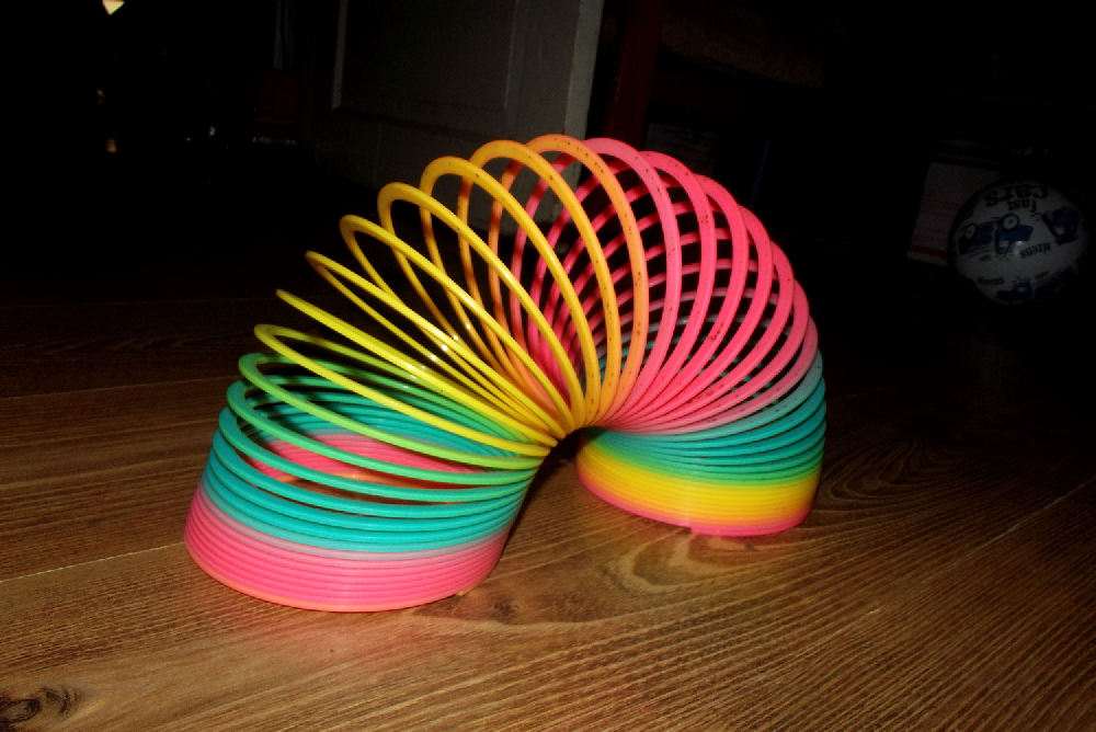 Kiedyś Adaś dostał o wuja taką sprężynę. Długaśna kolorowa. Czasem się plącze, jednak łatwo ją idzie rozplątać. Ile zabawy z nią Adaś ma to głowa mała. Najlepiej się bawić we dwójkę, wtedy jest jeszcze lepiej. Cena również niska, kilka złoty za nią dał.