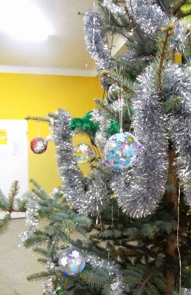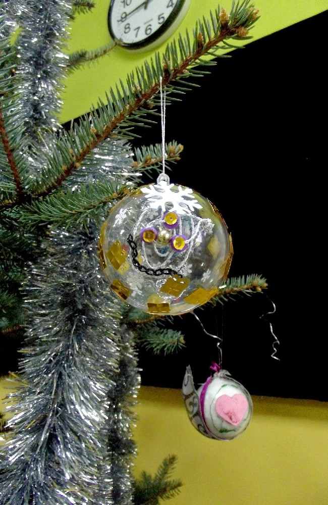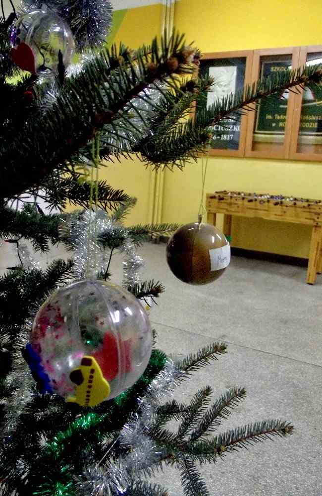 Jak choinka to i ozdoby. Dzieciaki w szkole otrzymały bombki i każdy mógł swoją udekorować jak tylko chciał! Część bombek zawisła na szkolnej głównej choince, a część zawisła na klasowych drzewkach. Praca przysporzyła im mnóstwo zabawy, śmiechu i przepięknych ozdób!