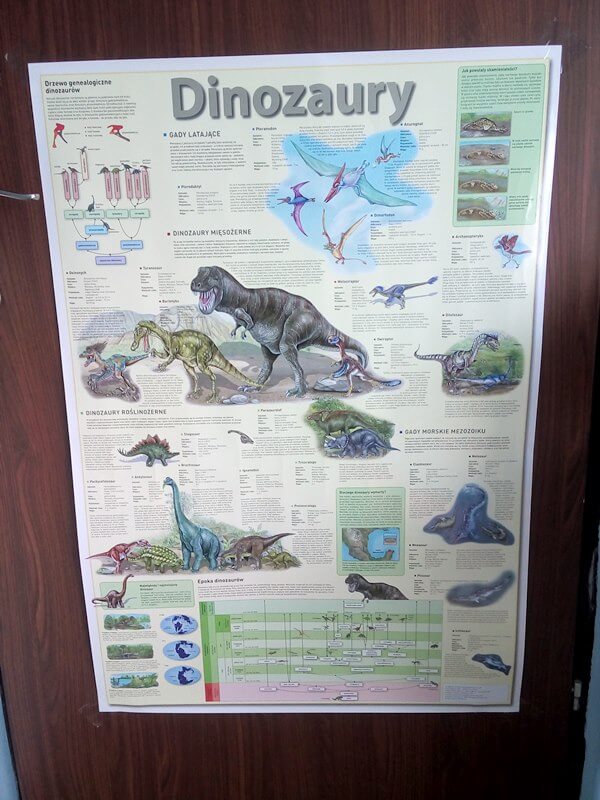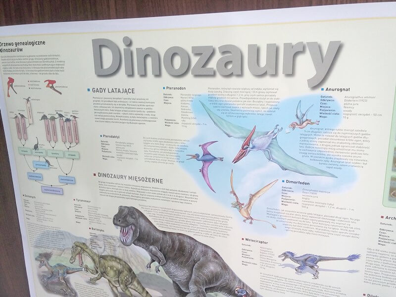 Wspomniałam również o mapach i plakatach. Przy okazji wizyty na poczcie zajechaliśmy do Lidla i kupiliśmy plakat z dinozaurami. Jest świetny. 120 cm długości, z realistycznymi ilustracjami zabezpieczony folią.