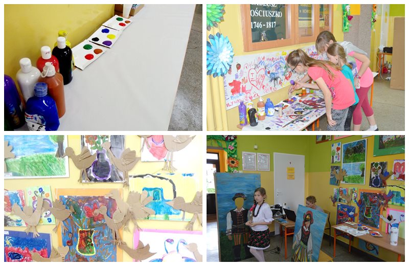 Miałam swoje stanowisko na Festiwalu i ogrom pracy. Mnóstwo dzieci robiło sobie zdjęcia w „foto-budkach” co sprawiło ogromną radość. Poza tym, malowanie na rolce papieru stempelkami, pędzelkami, rolkami od papieru toaletowego a także ptaszki z tektury. Te ostatnie maluchy zawładnęły i pięknie malowały realizując twórcze pasje. A wychodziło im to pięknie!