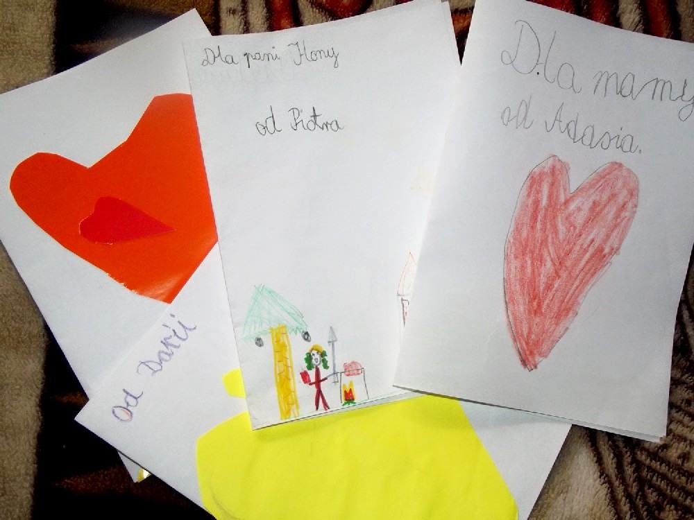 A gdy pojechałam później po Adasia, zostałam ogromnie zaskoczona! Dzieci przygotowały dla mnie laurki! Nie wszystkie zdążyły ukończyć więc otrzymam je dziś. Zobaczcie jakie piękne!
