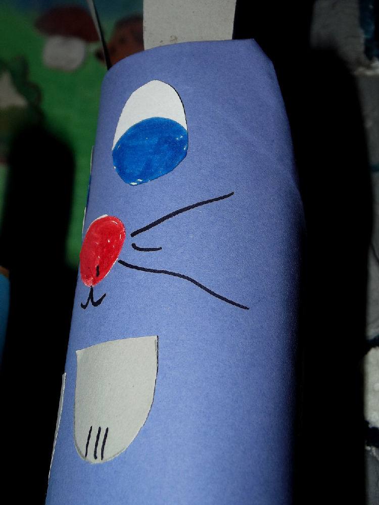 - Z kawałków rolki robimy nóżki i je przyklejamy pod brzuchem.